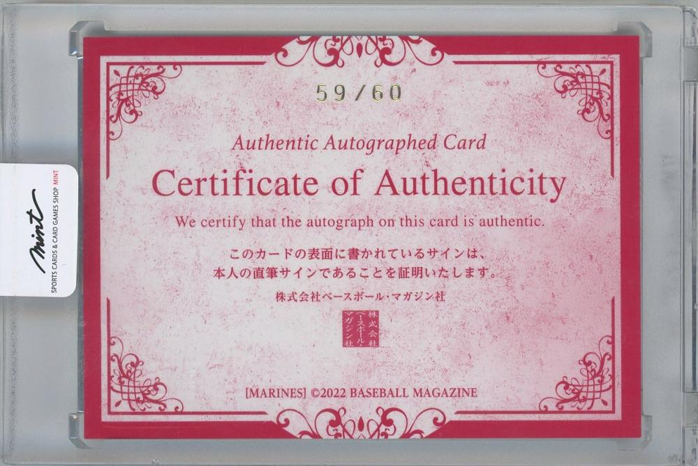 2022 BBM 千葉ロッテマリーンズ / 古谷拓郎 直筆サインカード 【59/60】