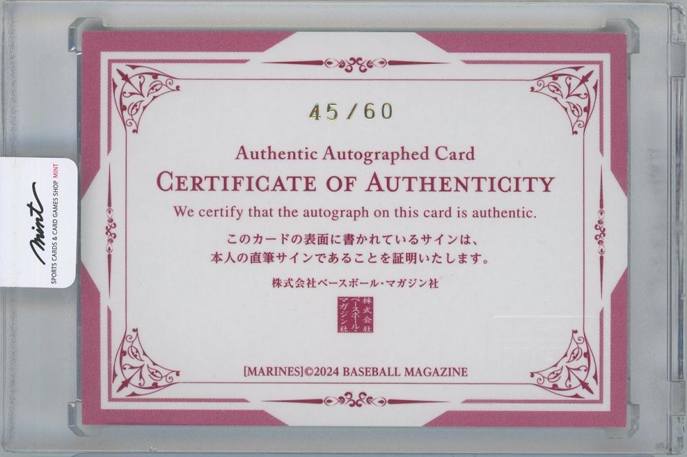 2024 BBM 千葉ロッテマリーンズ / 柿沼友哉 直筆サインカード 【45/60】
