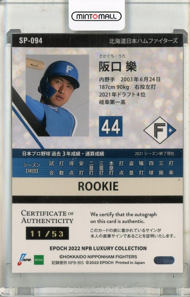2022 Epoch Luxury Collection 阪口樂 Authentic Autograph 直筆サインカード【11/53】 北海道日本ハムファイターズ