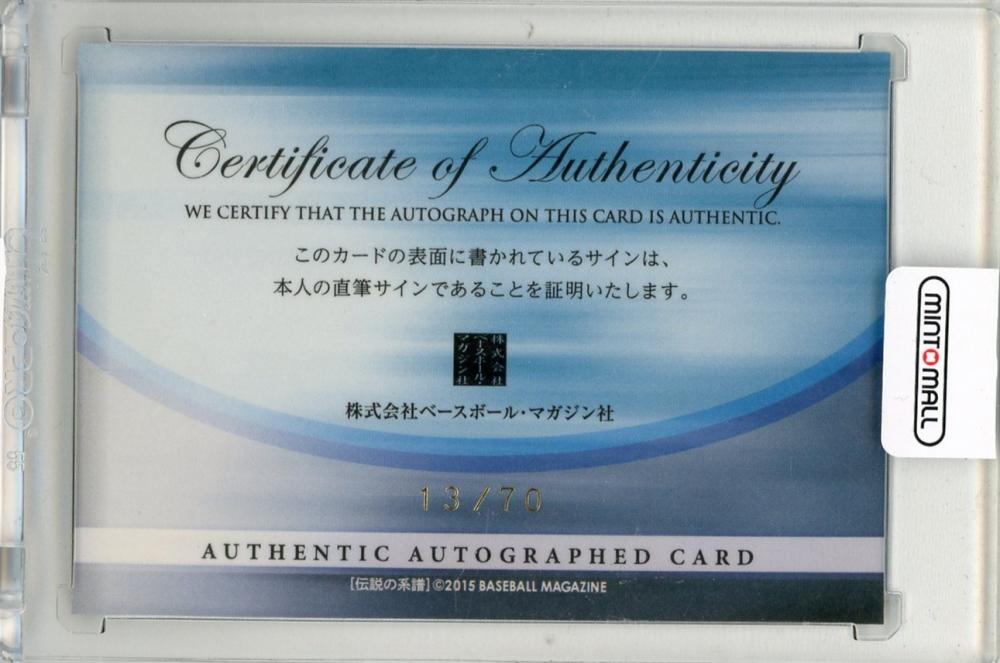 2015 BBM 伝説の系譜 川崎憲次郎 直筆サインカード【13/70】 ヤクルトスワローズ