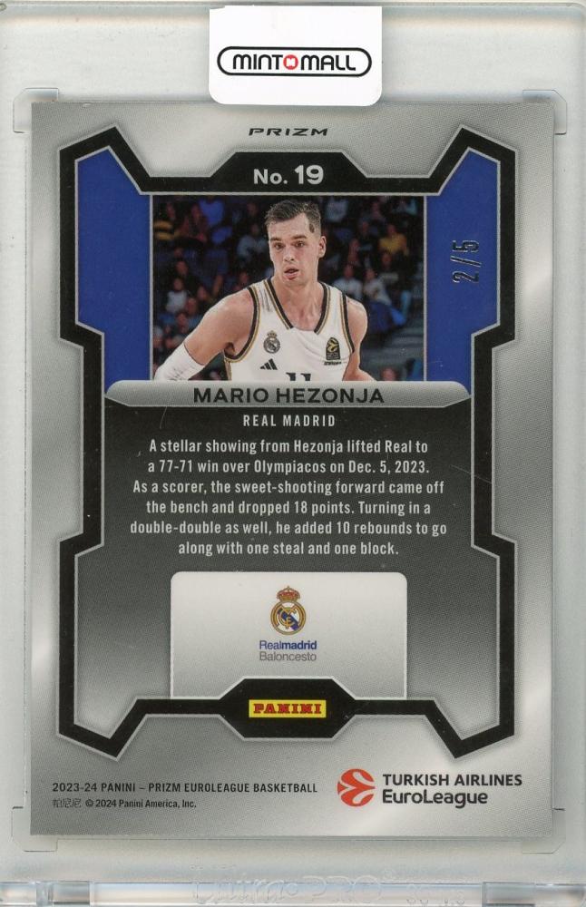 2023-24 PANINI Prizm Turkish Airlines EuroLeague Mario Hezonja Prizms Black Gold #19【2/5】 Real Madrid Baloncesto