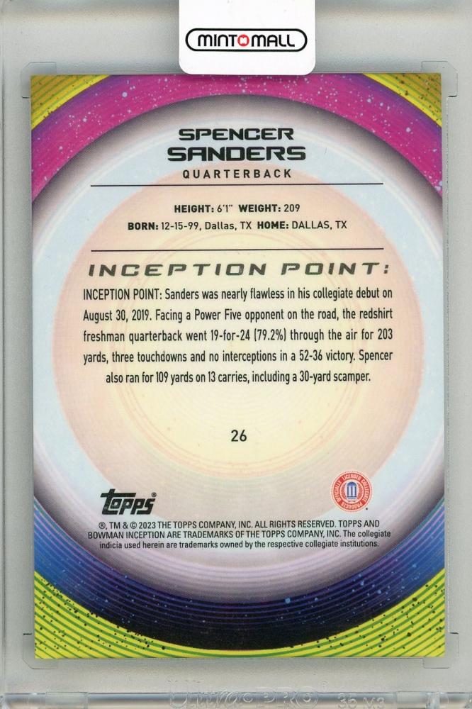 2022-23 BOWMAN Inception University Spencer Sanders Green Foil #26【247/299】 Ole Miss