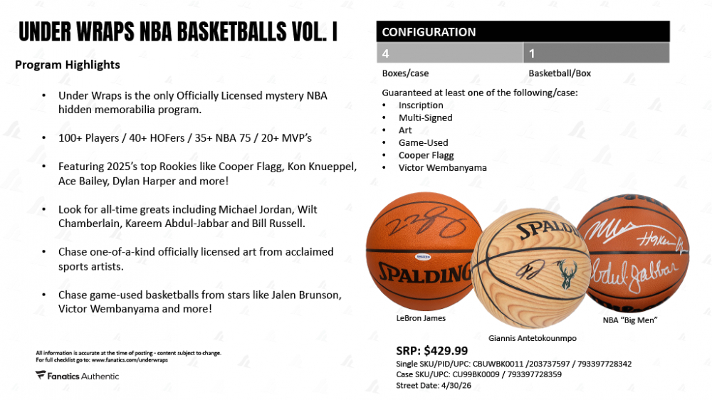 Fanatics社の人気メモラビリアシリーズUnder Wrapsからサイン入りバスケットボール版が登場!
