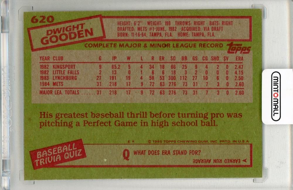 1985 TOPPS Dwight Gooden #620 RC New York Mets