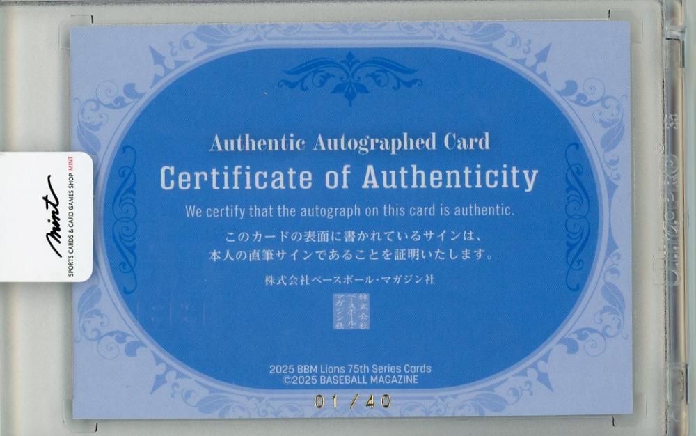 2025 BBM 埼玉西武ライオンズ 75周年 松原聖弥 直筆サイン【01/40】 埼玉西武ライオンズ