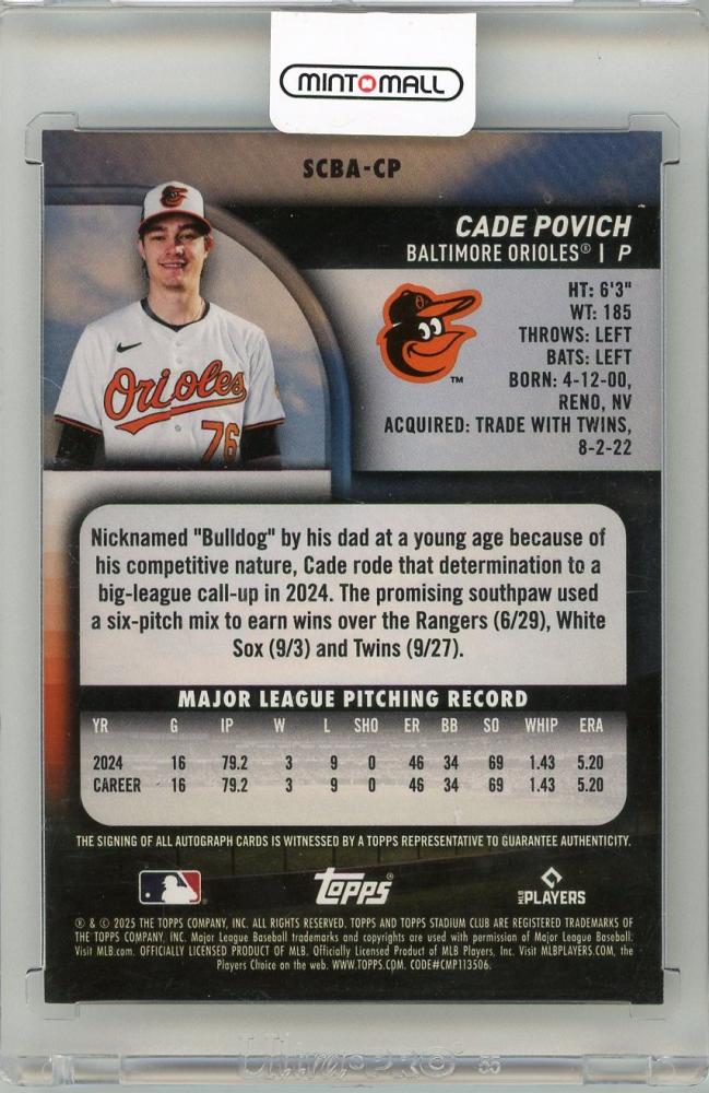 2025 TOPPS Stadium Club Cade Povich Autographs #SCBACP Baltimore Orioles