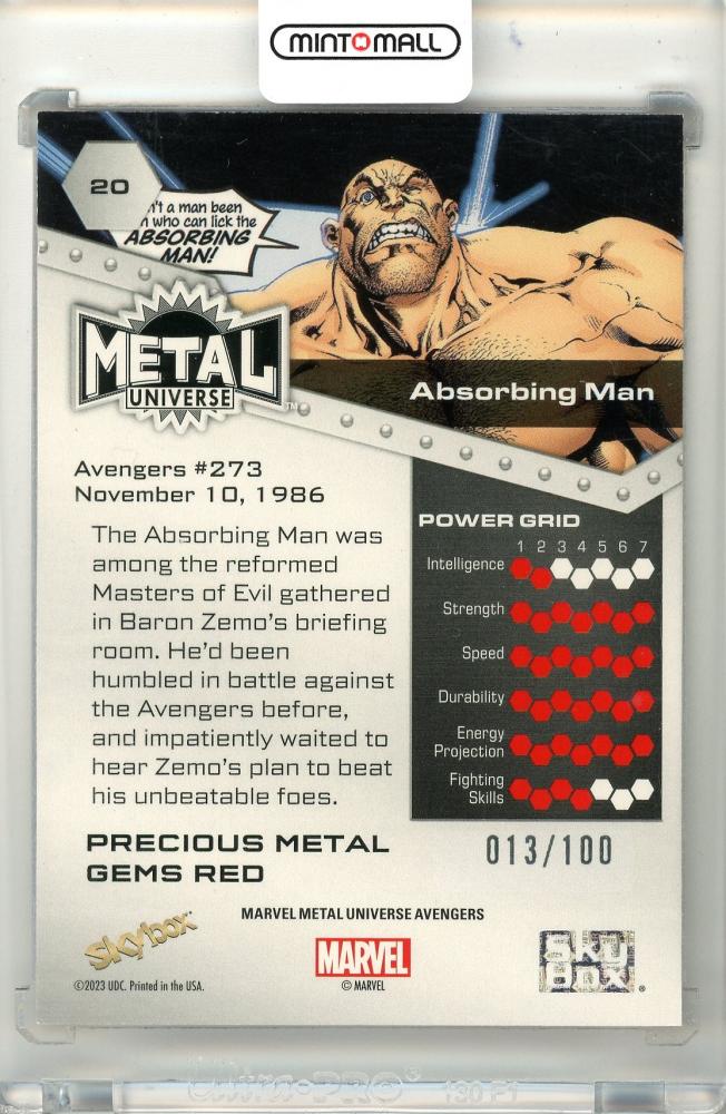 2023 Sky Box Marvel Metal Universe Avengers Absorbing Man #20 Precious Metal Gems Red【013/100】