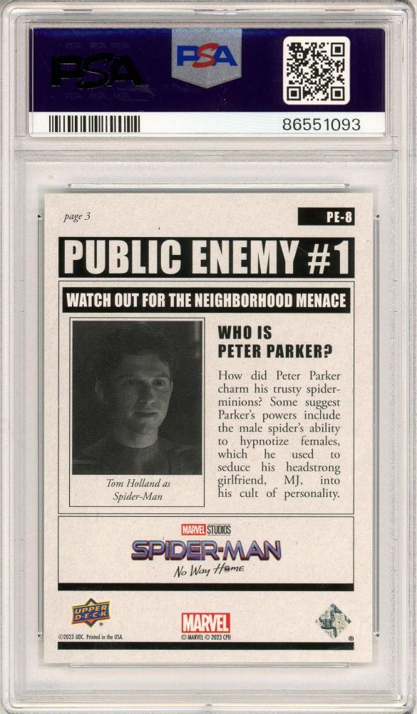 2023 Upper Deck Spider-Man: No Way Home Spider-Man #PE8 Public Enemy #1 Red Foil Parallel【044/199】【PSA8】
