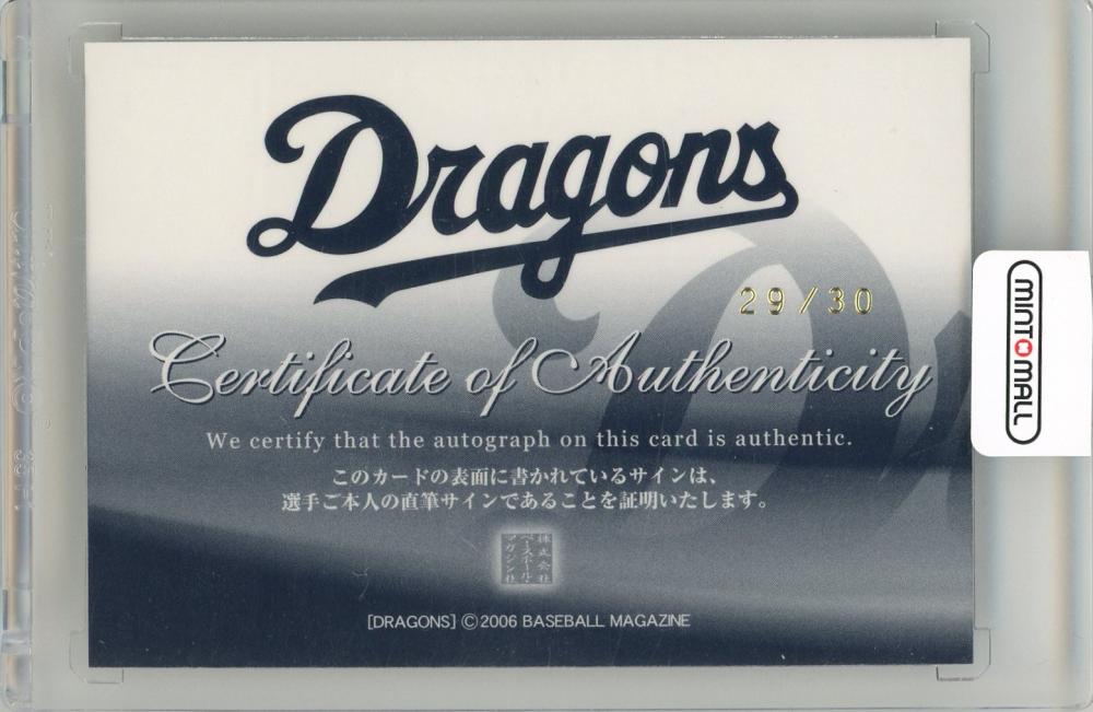 2006 BBM 中日ドラゴンズ アレックス 直筆サインカード【29/30】 中日ドラゴンズ