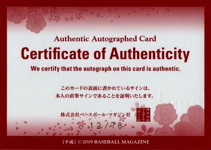 BBM 平成 伊東浩司 直筆サインカード 12/78