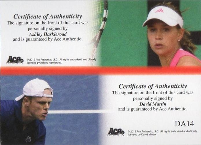 2012 Ace Authentic Ashley Harkleroad / David Martin Dual Autographs