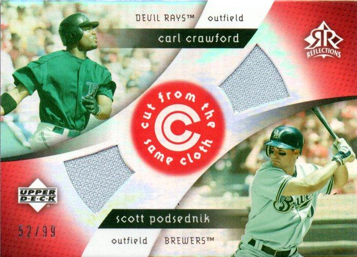 2005 UPPER DECK Reflections Carl Crawford & Scott Podsednik Game Used Jersey 52/99