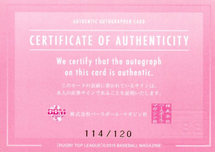 2015-16 BBM ラグビートップリーグ マレ・サウ (ヤマハ) 直筆サインカード 114/120