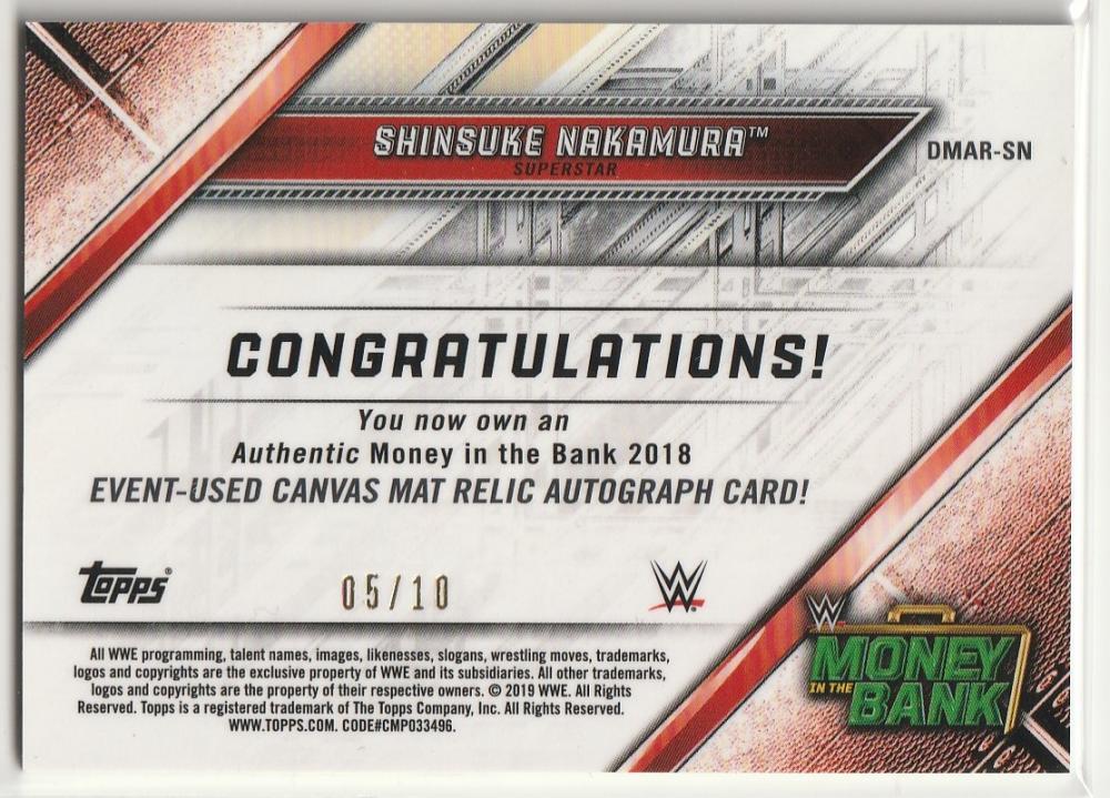 2019 TOPPS WWE RAW Autographed Mat Relics / Shinsuke Nakamura 【05/10】