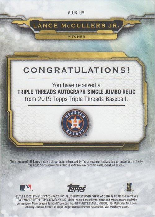 2019 Topps Triple Threads Lance McCullers Jr. Relic Autographs 43/50