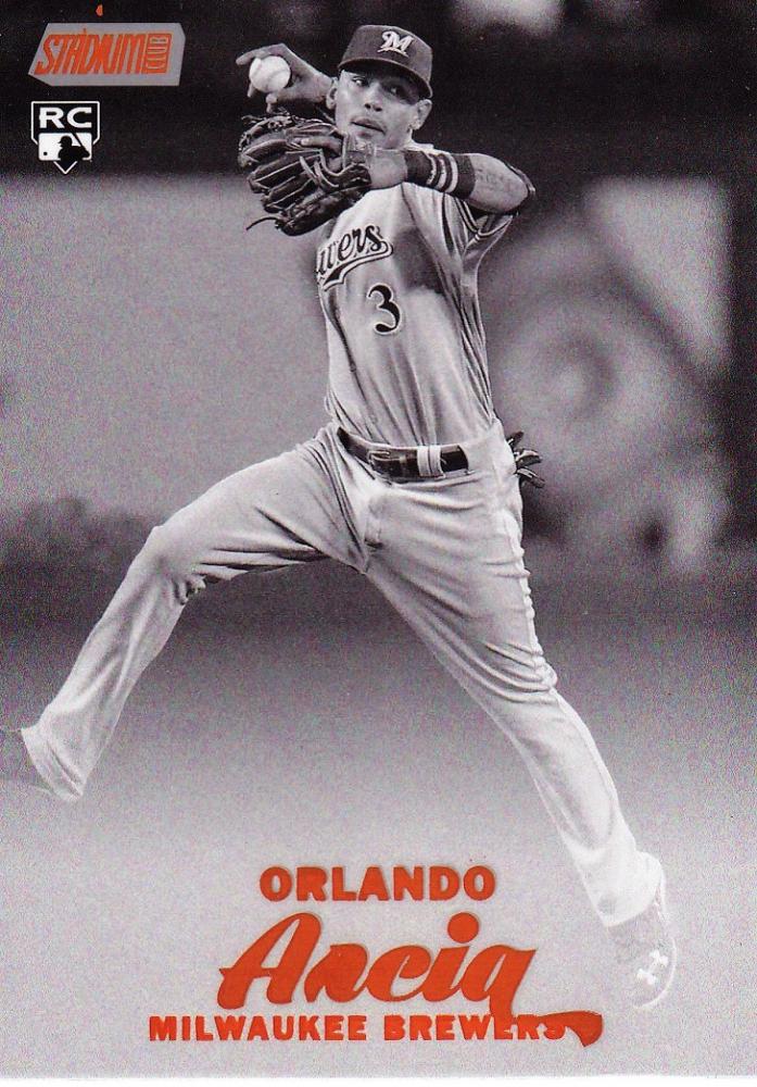 2017 Stadium Club Milwaukee Brewers Orlando Arcia Black and White Orange Foilパラレル版