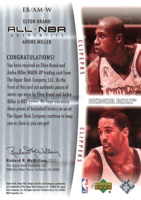2002-03 UPPER DECK Honor Roll Elton Brand & Andre Miller Dual Warm-ups
