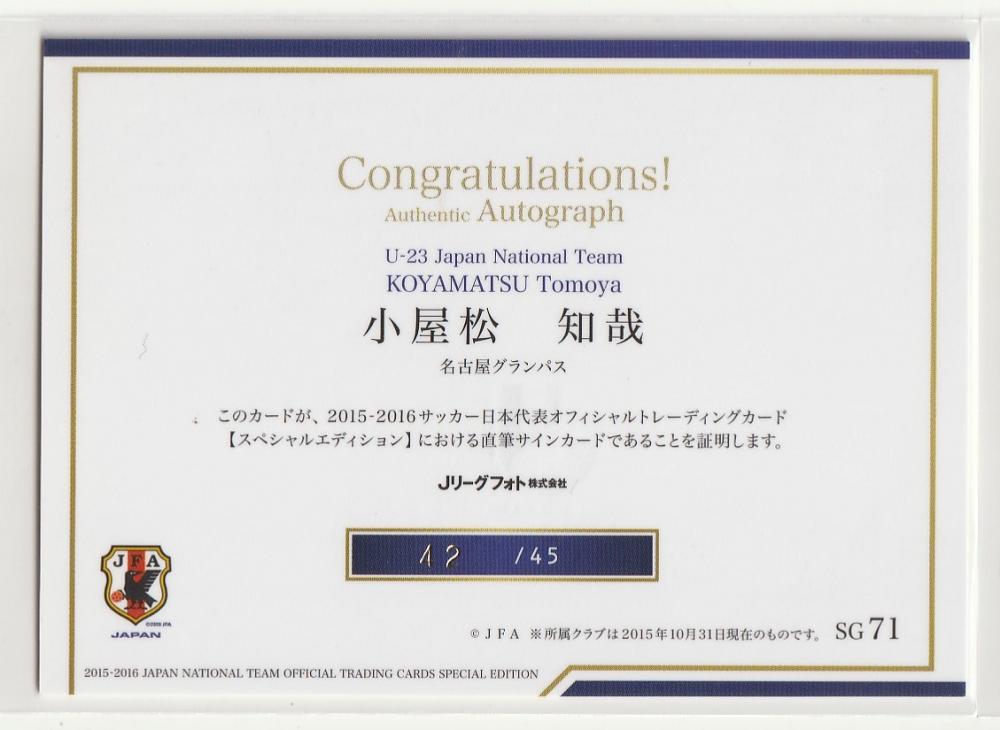 2015-16 日本代表SE 直筆サインカード / 小屋松知哉 【42/45】