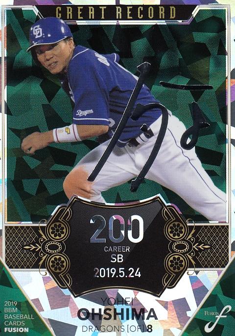 2019 BBM FUSION 中日 大島洋平 GREAT RECORD 銀箔サインカード 020/100