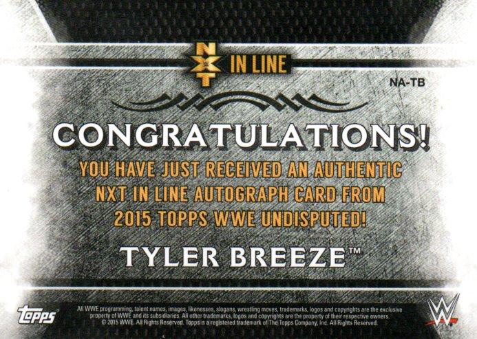 2015 TOPPS WWE Undisputed Tyler Breeze Autograph