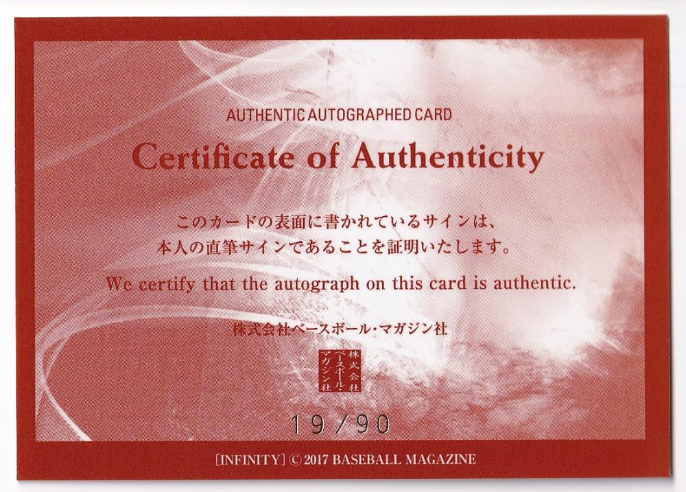 2017 BBM INFINITY 直筆サインカード / 五十嵐 圭 【19/90】