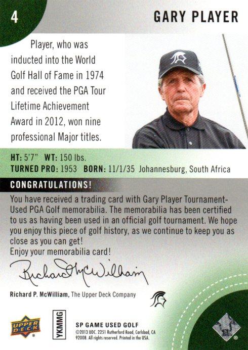 2014 UPPER DECK SP Game Used Golf Gary Player Tournament Used PGA Golf Memorabilia 11/50