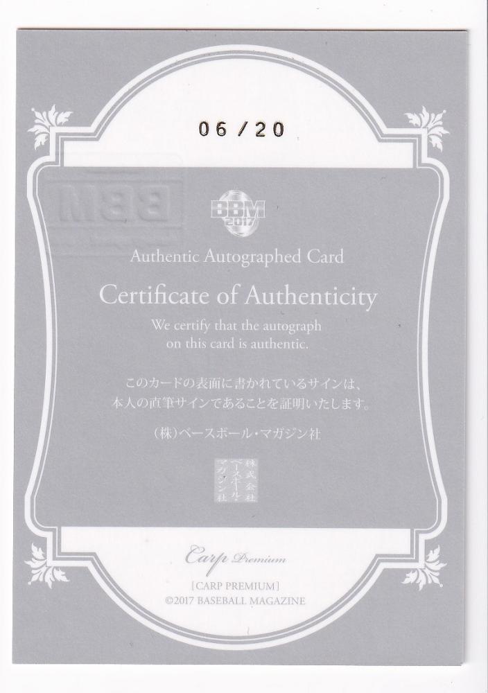 2017 BBM 広島東洋カーププレミアムセット 直筆サインカード / 中村祐太 【06/20】