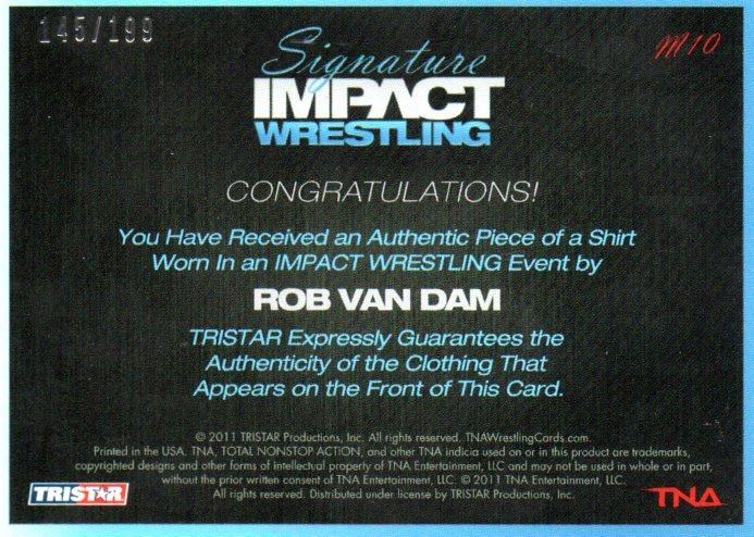 2011 TRISTAR TNA Signature Impact Wrestling Rob Van Dam Event Worn Memorabilia 145/199