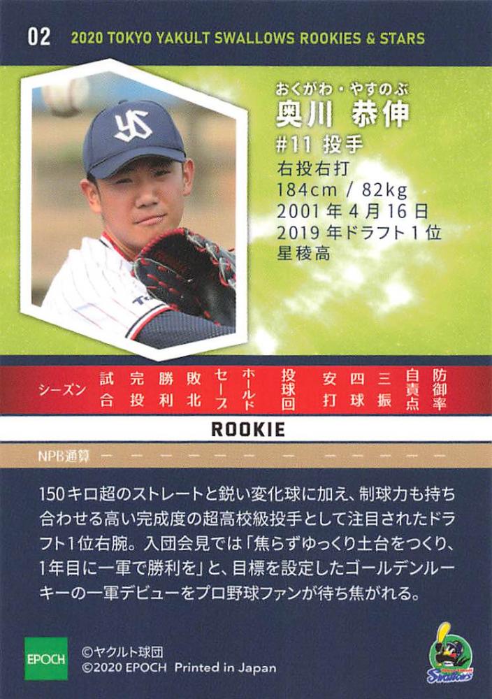 2020 EPOCH 東京ヤクルトスワローズ ROOKIES&STARS 奥川 恭伸 レギュラーカード02