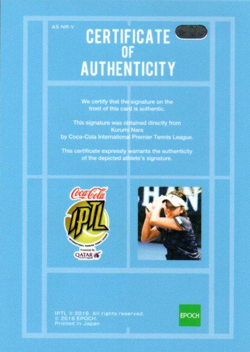 2016 EPOCH コカ・コーラ インターナショナル・プレミア・テニスリーグ (IPTL) カードセット Kurumi Nara Autograph 13/59