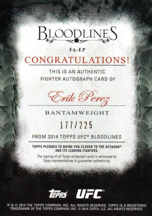 2014 TOPPS UFC Bloodlines Erik Perez Autograph 177/225