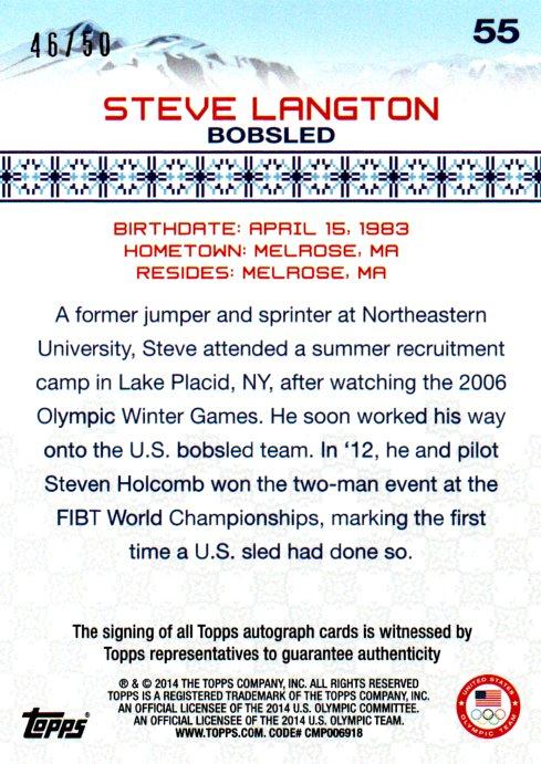 2014 TOPPS U.S. Olympic Team Steve Langton (Bobsled) Autograph 46/50