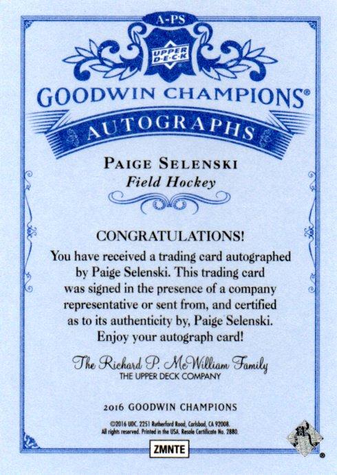 2016 UPPER DECK Goodwin Champions Paige Selenski (Field Hockey) Autograph