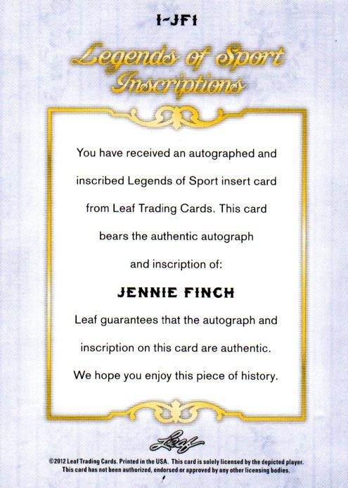 2012 LEAF Legends of Sport Jennie Finch (Softball) Autograph