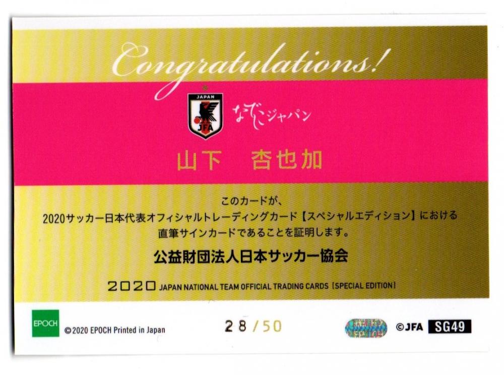 2020 日本代表スペシャルエディション 山下杏成加 直筆サインカード 【28/50】