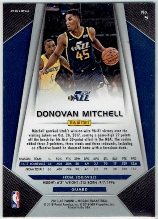 2017-18 PANINI MOSAIC PRIZM Rookie Card Donovan Mitchell
