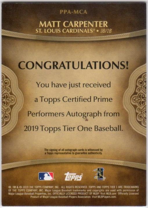 2019 Topps Tier One Matt Carpenter Autographs 14/25