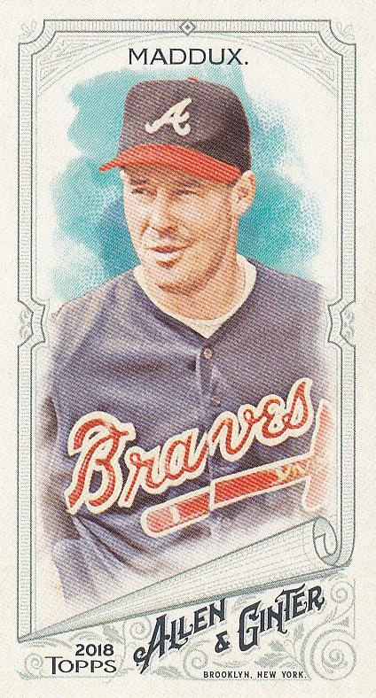 2018 Topps Allen & Ginter Baseball Atlanta Braves Greg Maddux Base, Mini Palallel Brooklyn Back 20/25