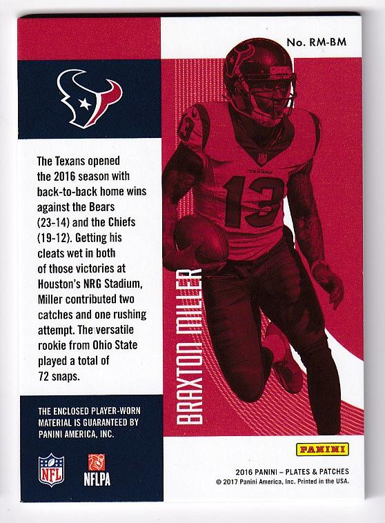 2016 PANINI Plates and Patches Red Parallel Rookie Material Braxton Miller Houston Texans 【06/10】