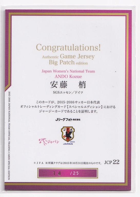2015-16 日本代表SE ビッグパッチカード 安藤梢 【14/25】