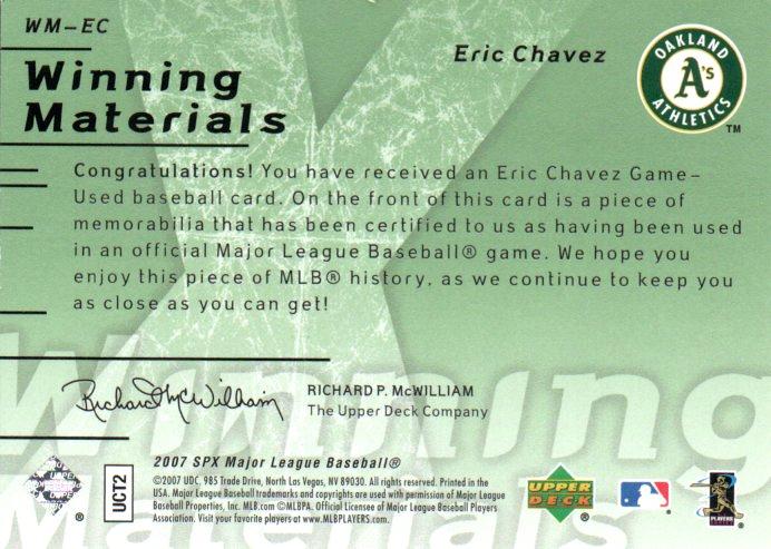 2007 UPPER DECK SPX Eric Chavez Game Used Memorabilia 140/175