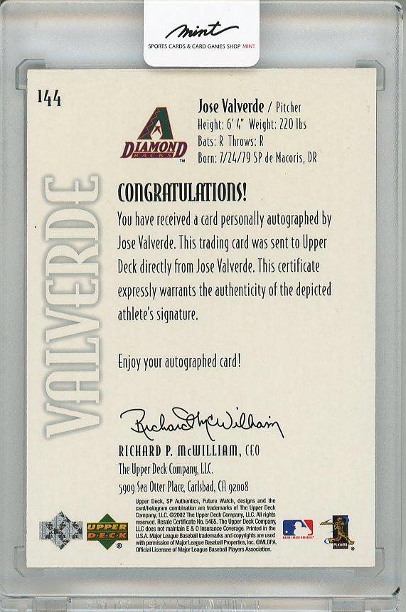 2002 UPPER DECK SP Authentic Jose Valverde Autograph 619/999