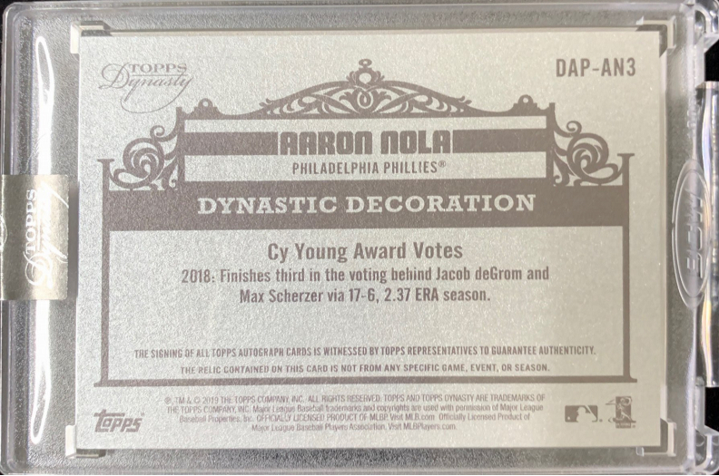 2019 Topps Dynasty Philadelphia Phillies Aaron Nola Autograph Patches Silverパラレル版 2/5