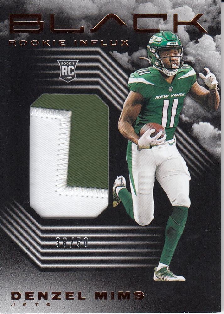 2020 Panini Black Football New York Jets Denzel Mims Rookie Influx Memorabilia, Copper Parallel 38/50