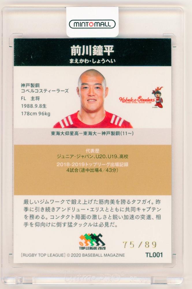 2020 BBM ジャパンラグビートップリーグ 神戸製鋼コベルコスティーラーズ 前川鐘平 直筆サインカード 75/89