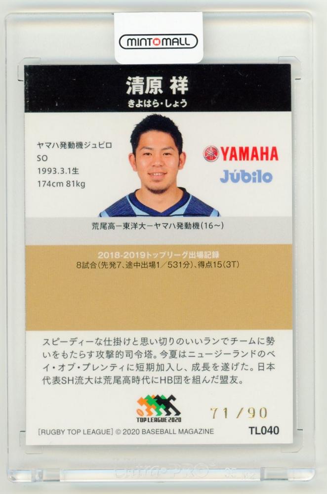 2020 BBM ジャパンラグビートップリーグ ヤマハ発動機ジュビロ 清原祥 直筆サインカード 71/90