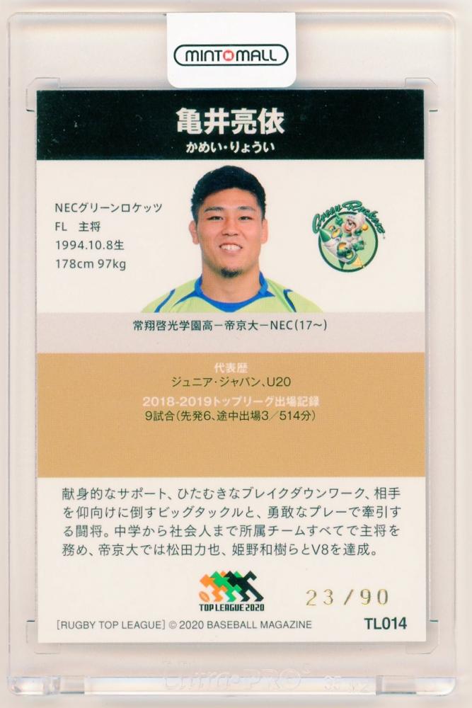 2020 BBM ジャパンラグビートップリーグ NECグリーンロケッツ 亀井亮依 直筆サインカード 23/90