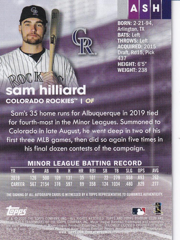 2020 Topps Stadium Club Colorado Rockies Sam Hilliard Autographs