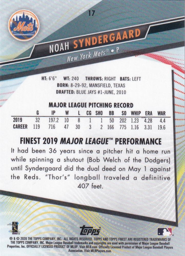 2020 Topps Finest New York Mets Noah Syndergaard Base Green Refractorsパラレル版 56/99