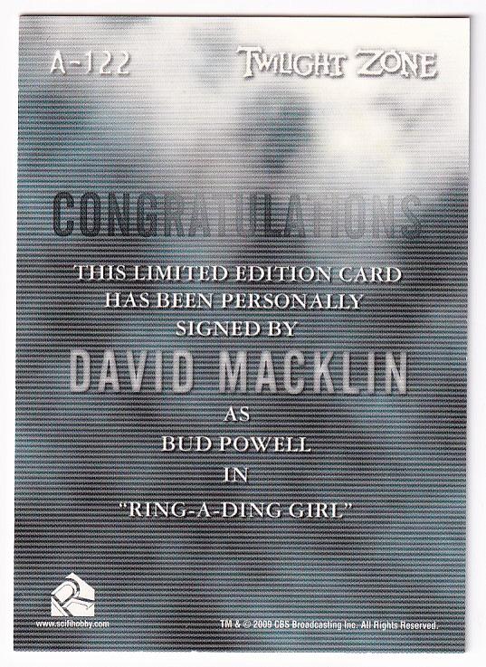 2009 RITTENHOUSE Complete Twilight Zone Autograph David Macklin as Bud Powell